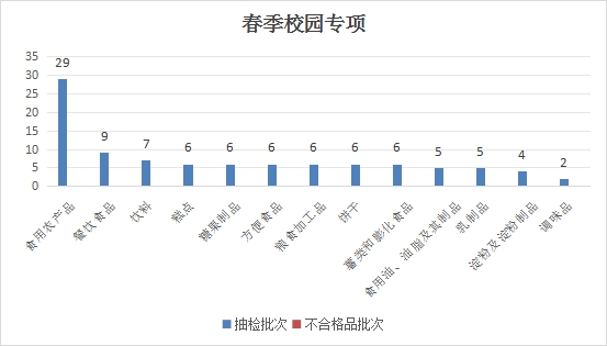 本次春季校園專項(xiàng)抽檢共97批次,涉及13個(gè)食品大類