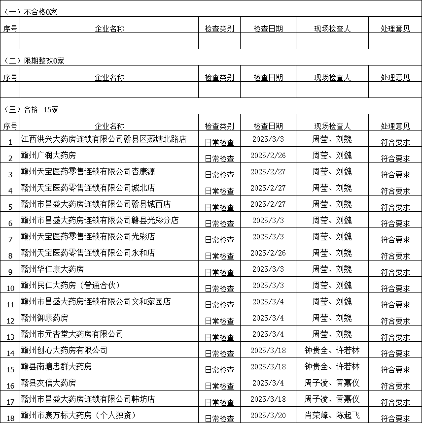 贛縣區(qū)市場(chǎng)監(jiān)管局藥械化監(jiān)督檢查月報(bào)表(藥品、醫(yī)療器械202503)
