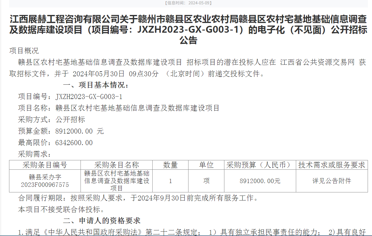 贛縣區(qū)農(nóng)村宅基地基礎(chǔ)信息調(diào)查及數(shù)據(jù)庫建設(shè)項(xiàng)目公開招標(biāo)