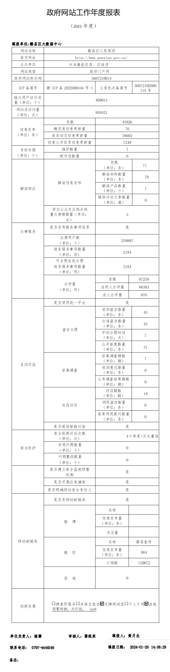贛縣區(qū)人民政府網(wǎng)站工作年度報表(2023年)
