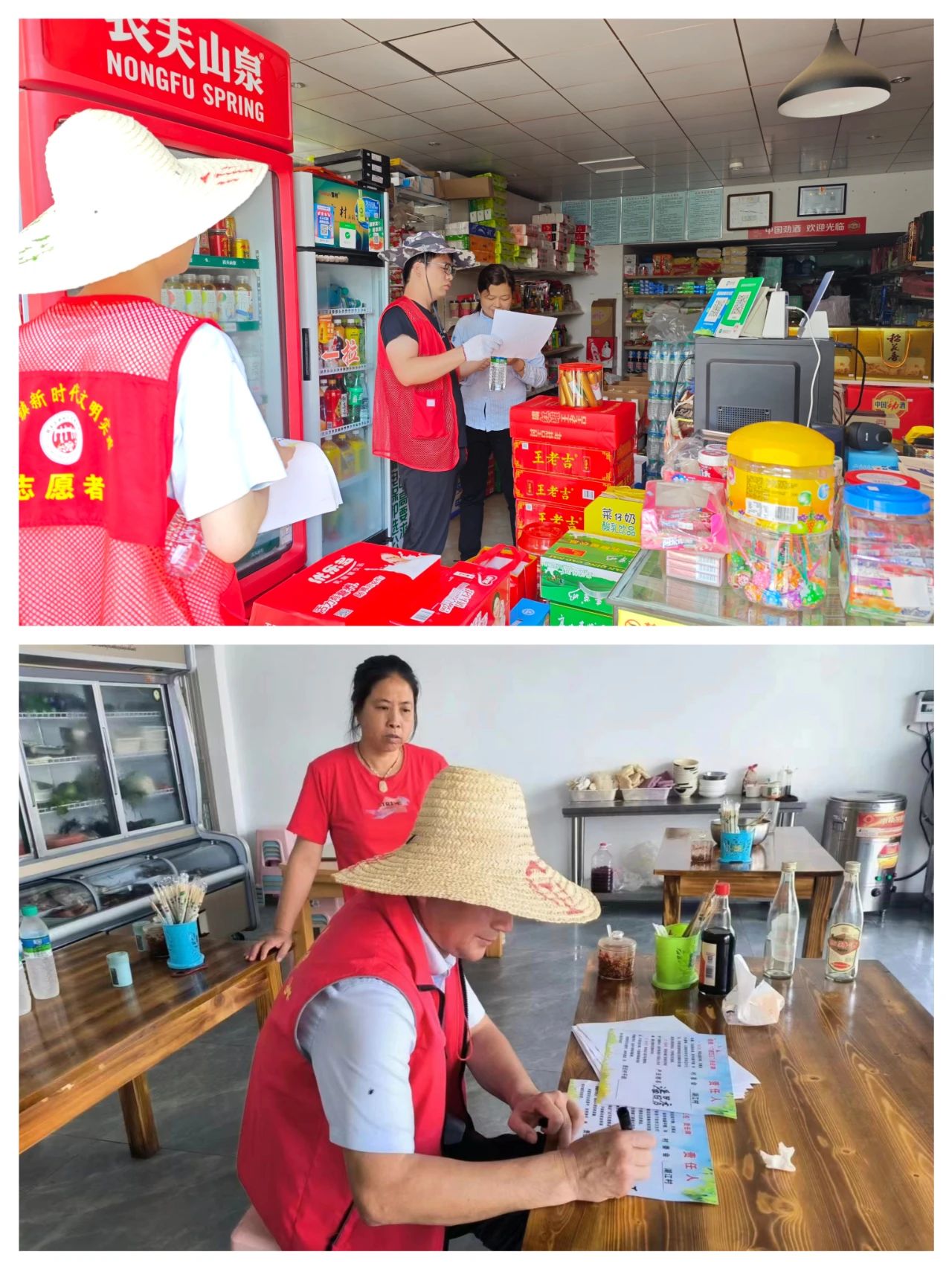 志愿者宣傳創(chuàng)衛(wèi)工作、發(fā)放門前三包責(zé)任牌