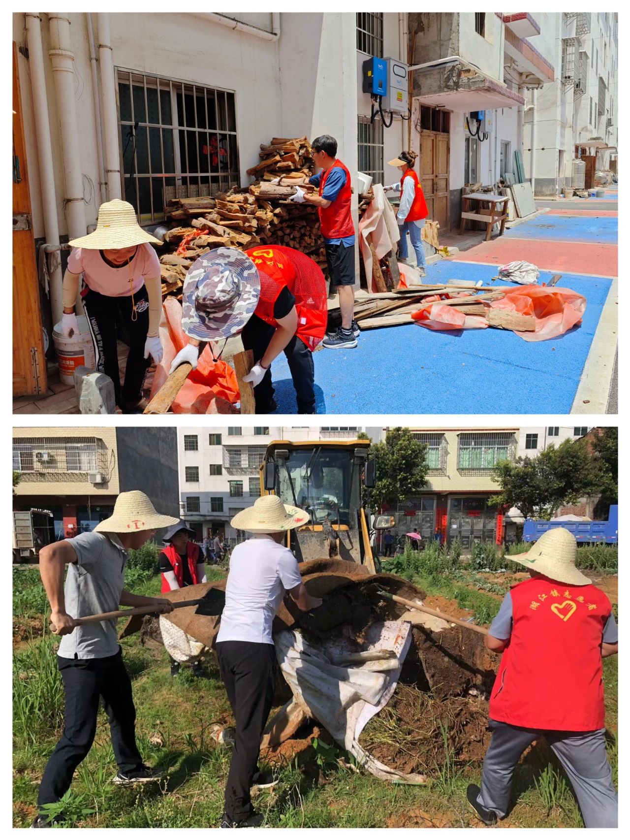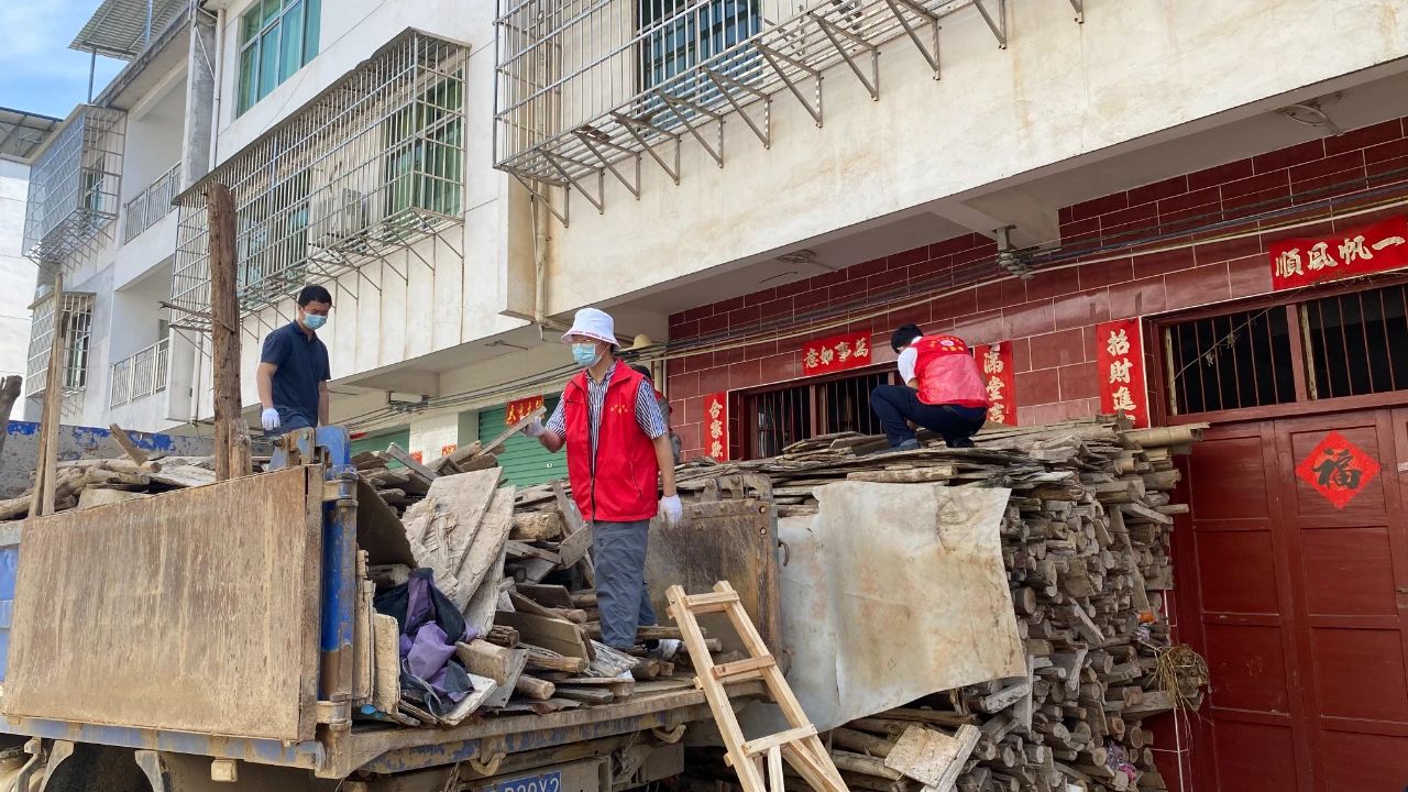 志愿者幫助村民整理雜物