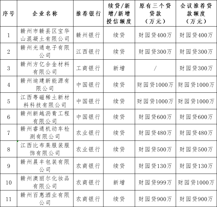 2025年7月25日,經(jīng)區(qū)“財園信貸通”“小微信貸通”“創(chuàng)業(yè)信貸通”融資工作會議審定,以下企業(yè)推薦給合作銀行實施“三個信貸通”融資工作,現(xiàn)特公示三天(7月26日至7月28日),請園區(qū)企業(yè)和社會各界在公示期內(nèi)進(jìn)行監(jiān)督,監(jiān)督電話:0797-4444180。