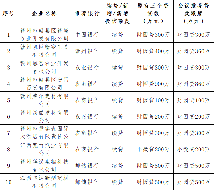 2025年11月19日,經(jīng)區(qū)“財園信貸通”“小微信貸通”“創(chuàng)業(yè)信貸通”融資工作會議審定,以下企業(yè)推薦給合作銀行實施“三個信貸通”融資工作,現(xiàn)特公示三天(11月20日至11月22日),請園區(qū)企業(yè)和社會各界在公示期內進行監(jiān)督,監(jiān)督電話:0797-4444180。